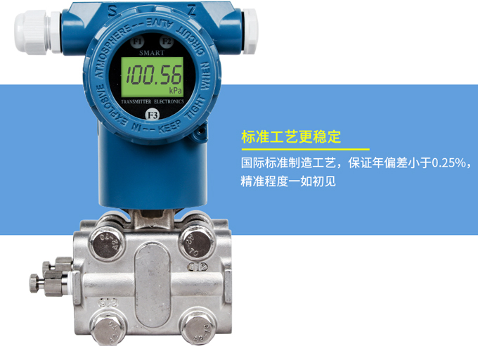 SIN-3051系列壓力變送器利用差動電容檢測的原理,當膜片兩側壓力不一致時,使容室中測量膜片產生位移,其位移量與壓力差成正比,通過電路處理將電容變化量轉換成4~20mA的二線制電流或電壓信號,可帶上458協議或者HART通訊協議功能。該變送器具有堅固抗振,量程,零點和阻尼現場連續可調。