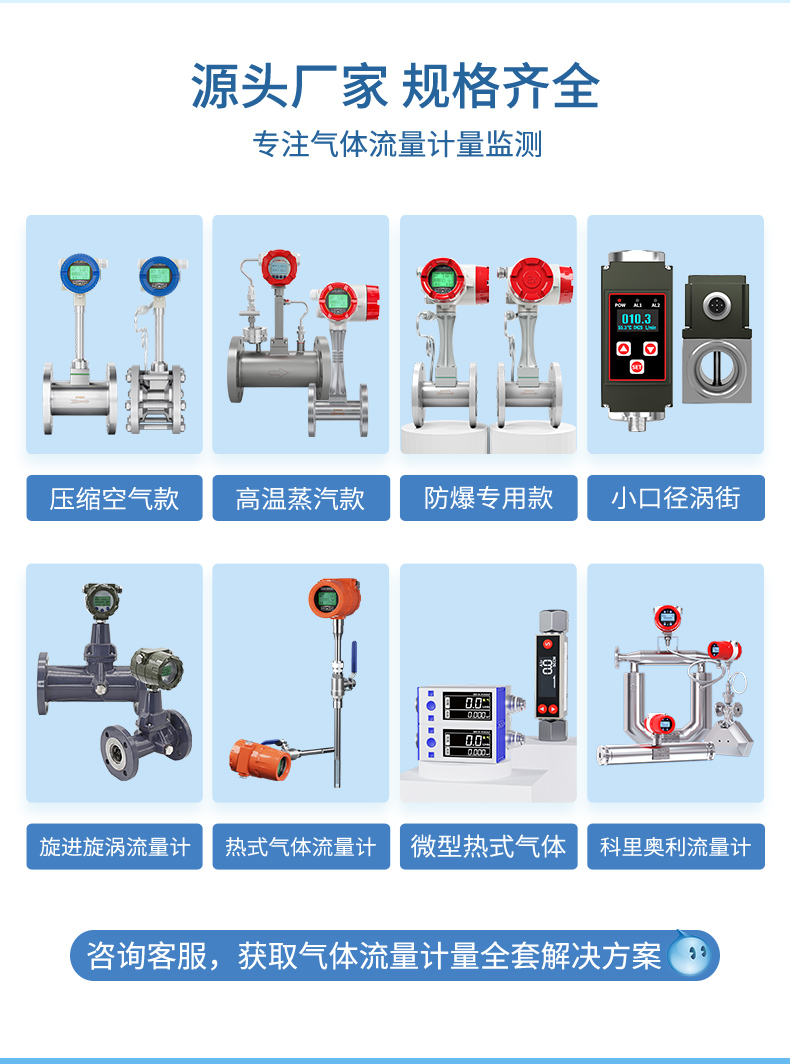 選擇合適的流量計也是非常重要的。不同的應用場景需要不同的流量計。例如,對于大流量應用,可以選擇分體型渦街流量計;對于小流量應用,可以選擇溫壓補償一體型渦街流量計。此外,還需要考慮氣體的性質、溫度、壓力等因素,選擇合適的材質和結構。