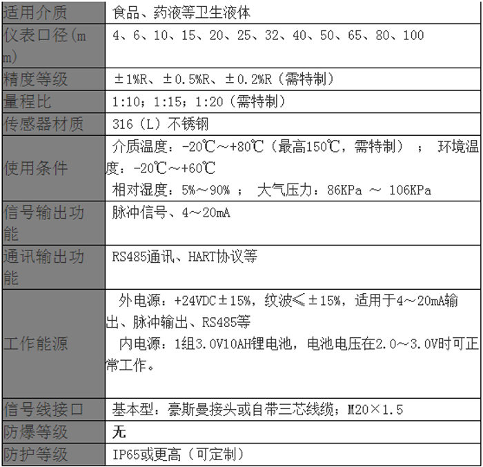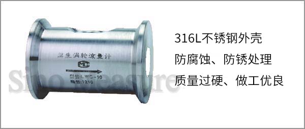 LWS-SIN系列衛生渦輪流量計是一種廣泛應用于制藥、食品、飲料等行業,作為計量、配料、控制、成品灌裝等用途。流量計量儀表,該儀表外殼是用不繡(316L)制成,機芯部分使用特種材質,具有良好的防腐蝕、防銹能力。整表結構突破傳統工藝,采用良好的防腐能力。大大提高了儀表的準確度和重復性。專門為制藥、飲料行業設計,采用快裝式連接結構,方便清洗。LWS系列衛生渦輪流量計已達到同類產品國際水準,是衛生行業理想儀表。