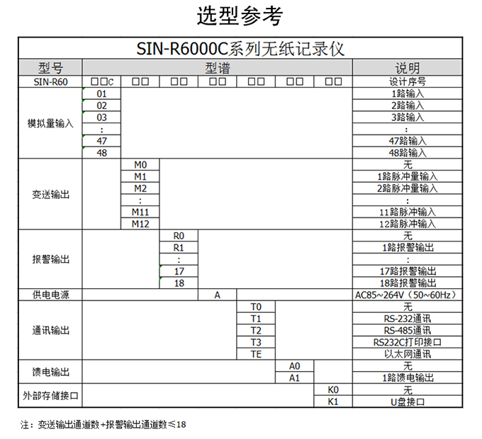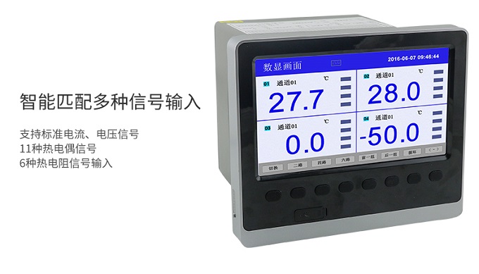 SIN-R6000C系列彩色無(wú)紙記錄儀48路(萬(wàn)能輸入(可組態(tài)選擇輸入:標(biāo)準(zhǔn)電壓、標(biāo)準(zhǔn)電流、熱電偶、熱電阻、頻率、毫伏等)。可帶18路報(bào)警輸出,12個(gè)變送輸出,RS232/485通訊接口,以太網(wǎng)接口,微型打印機(jī)接口和USB接口,SD卡插座;可提供傳感器配電;具有強(qiáng)大的顯示功能,實(shí)時(shí)曲線顯示,歷史曲線追憶,棒圖顯示,報(bào)警列表顯示。人性化的外觀設(shè)計(jì)、良好的功能體現(xiàn)、可靠的硬件品質(zhì)、精湛的制造工藝,使SIN-R6000C具有更高的性能價(jià)格比。