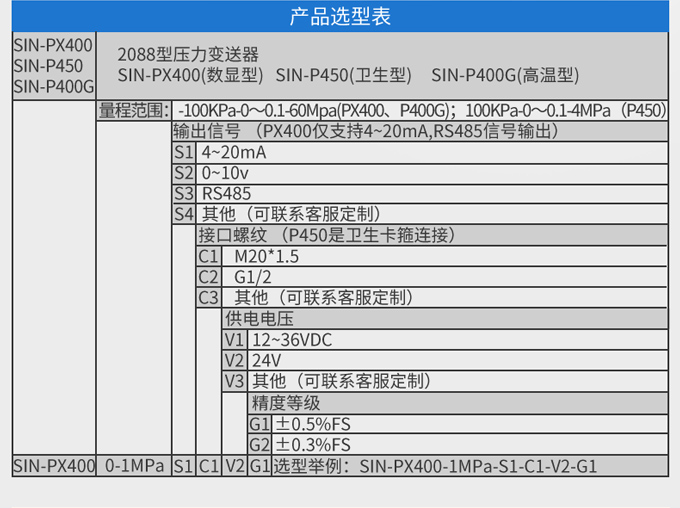 SIN-P400壓力變送器,采用全數字電路板,做到用戶可在一定范圍內自行現場修改量程,極大的方便了現場使用。